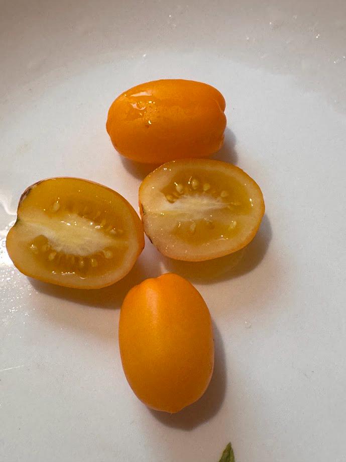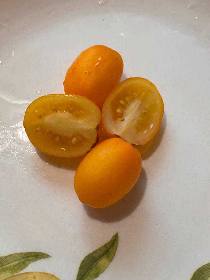 Indeterminate, mid season. Thick skin but not as thick as the red version. Great flavor.