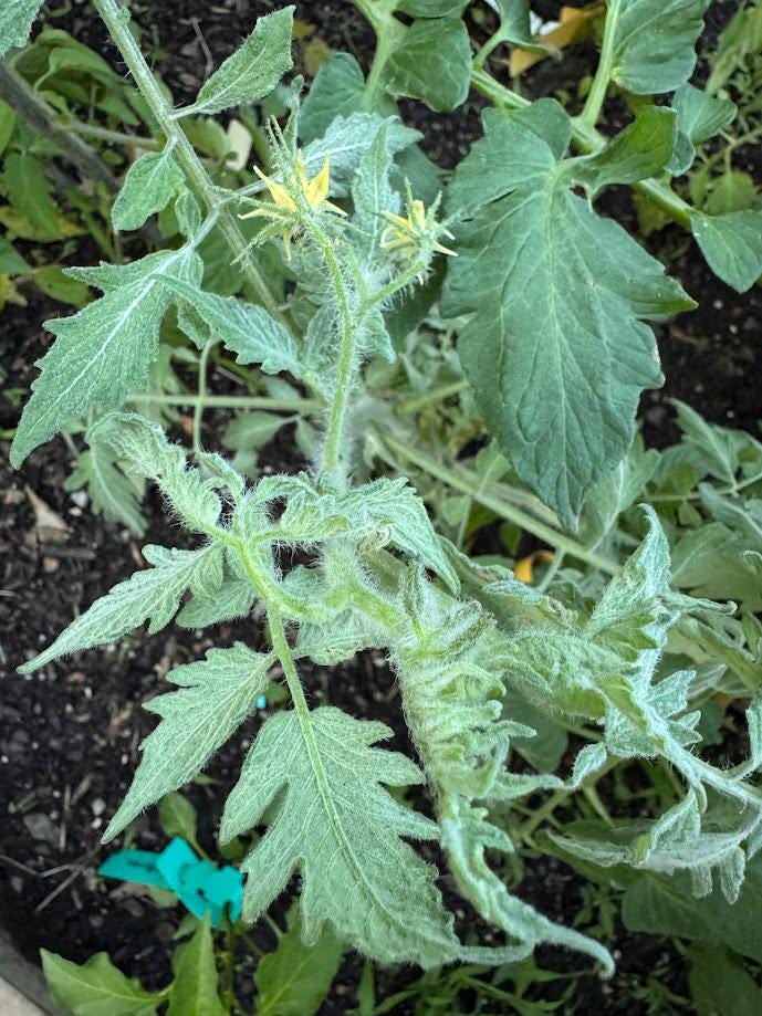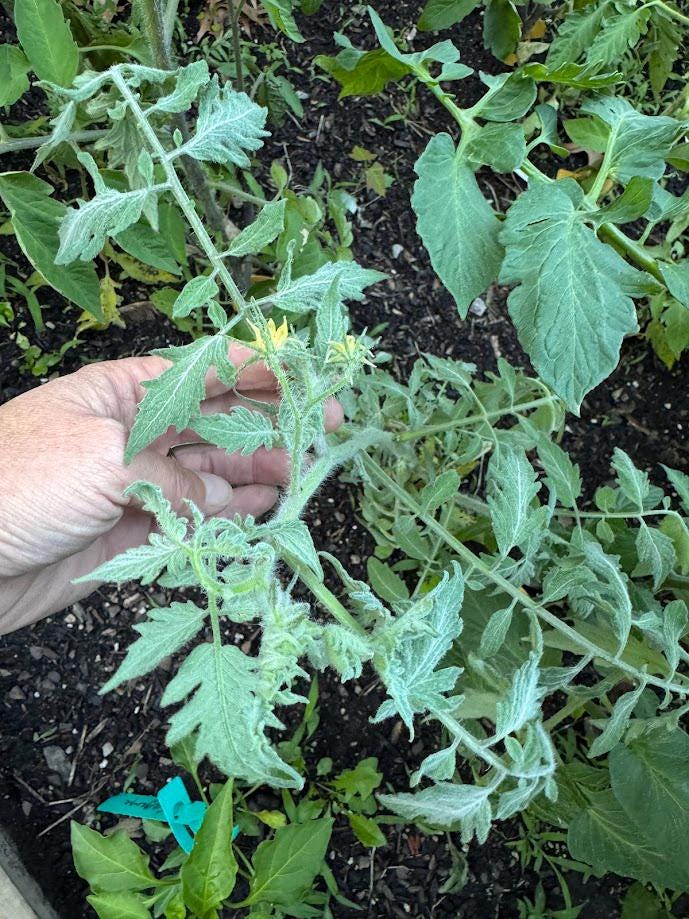 This is a really pretty tomato plant. Indeterminate, fuzzy leaves and fuzzy fruit!