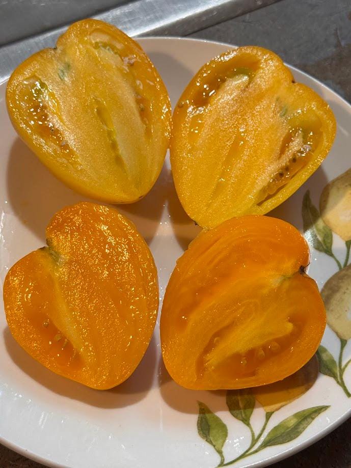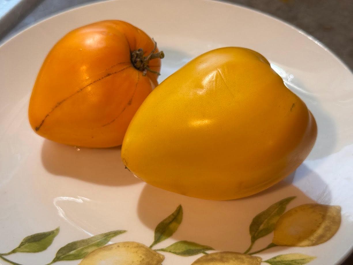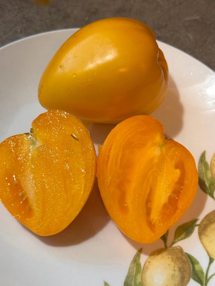 90 days, Indeterminate, regular leaf. Origins from TN. Large Yellow Heart shaped fruits. Meaty with little seeds and great fruity flavor!
