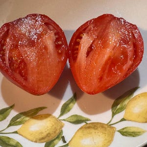 This is bread by Dean Slater. It is a regular leaf indeterminate plant that produces tons of trusses of blooms with 8-10 on each. Medium red slicer with a decent red beefsteak flavor.