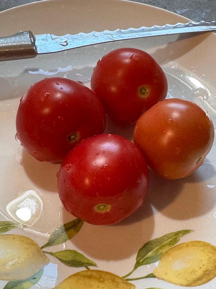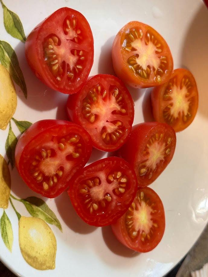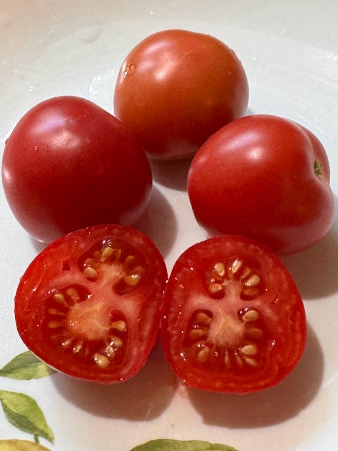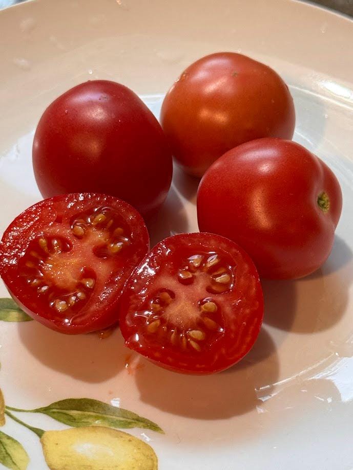 Indeterminate early season pink saladette size tomatoes. Great flavor. This one originates from Ukraine.