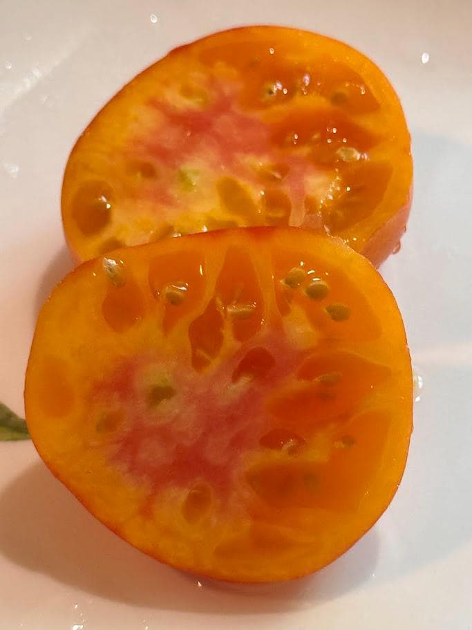 Beautiful bi color large beefsteaks. Potato leaf plants with long pointy heart leaves. Juicy and sweet. Great flavor!
