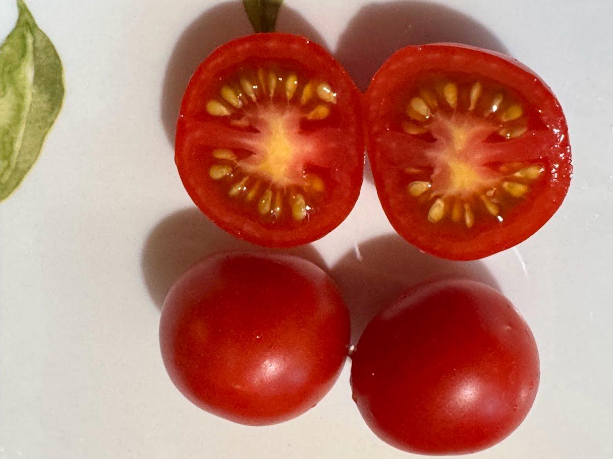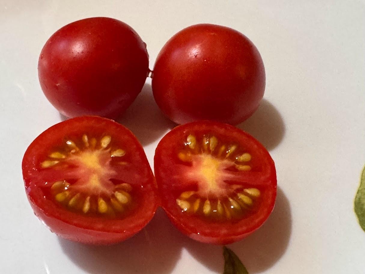 Indeterminate, regular leaf. Produce large amounts of frosty dark pink cherry tomatoes. Juicy and flavorful!