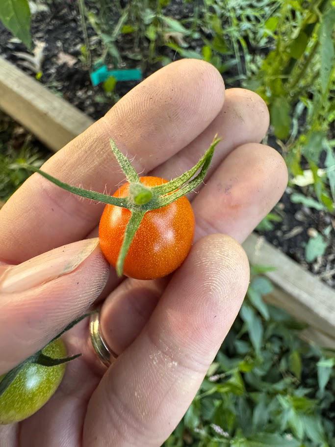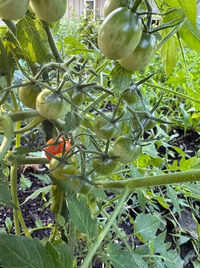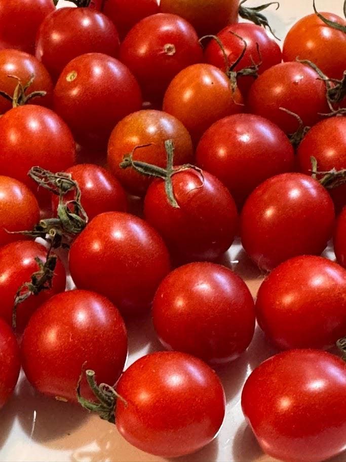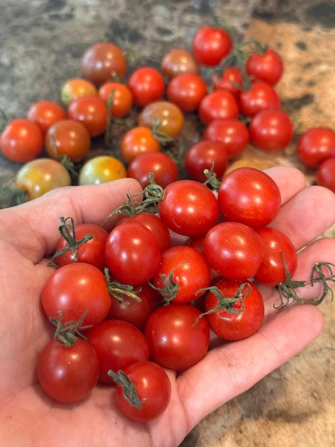 Originating from Garden Hoard, this is a wonderful cherry red tomato. Extra large sepals make them look like loads of spider clusters. So productive and the flavor is wonderful! Indeterminate. 70 days