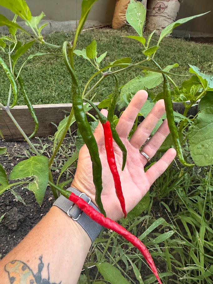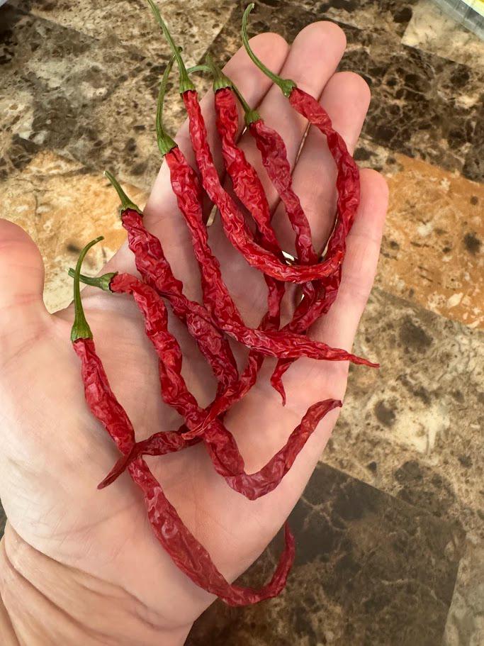 Fantastic drying pepper. 5-7 inches long. Thin walls and medium heat.